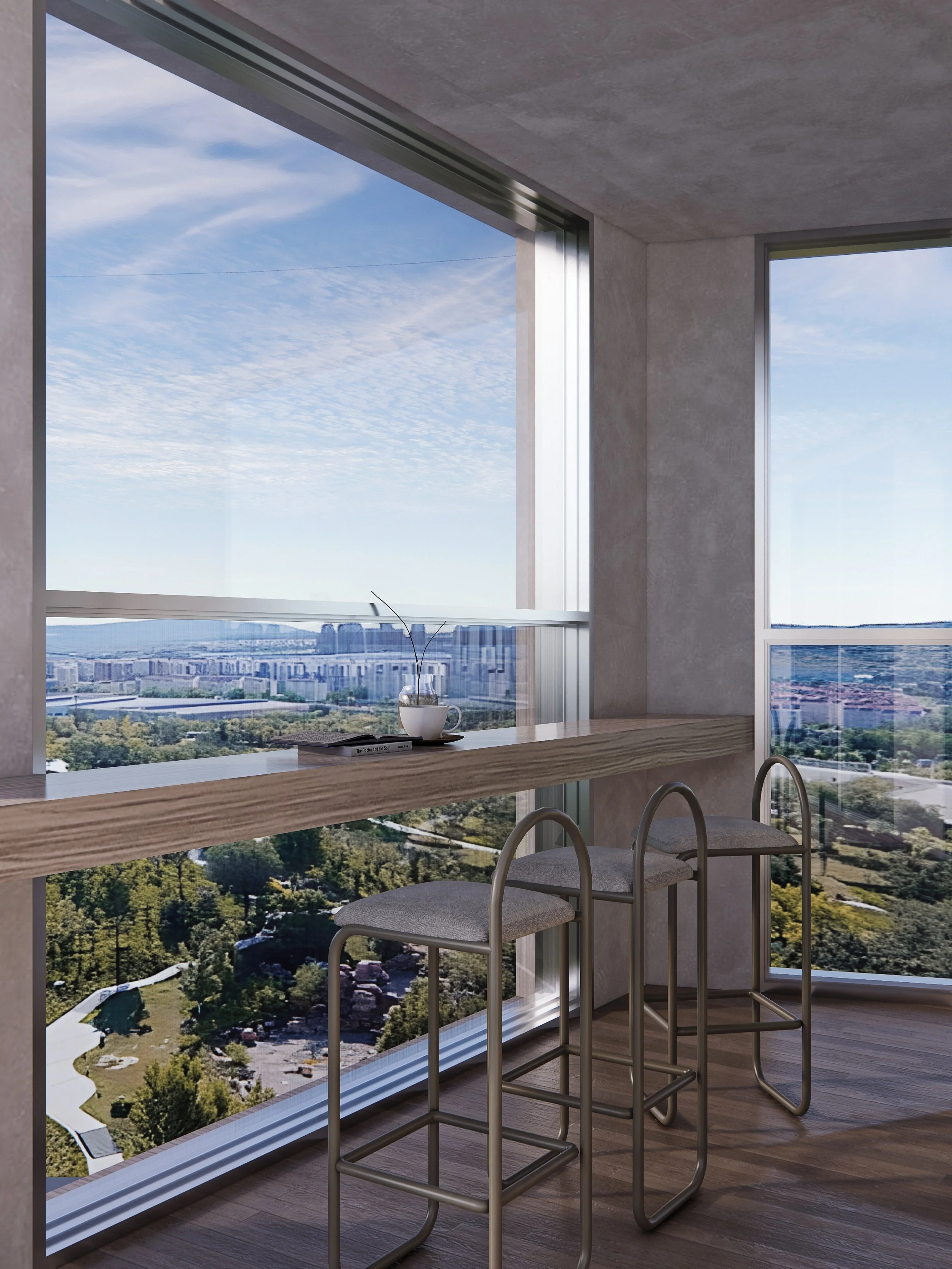 This interior combines the clean lines of Japandi design with the warmth of natural wood. Located on a high floor, the space benefits from plenty of natural light and views over Zuidpark.